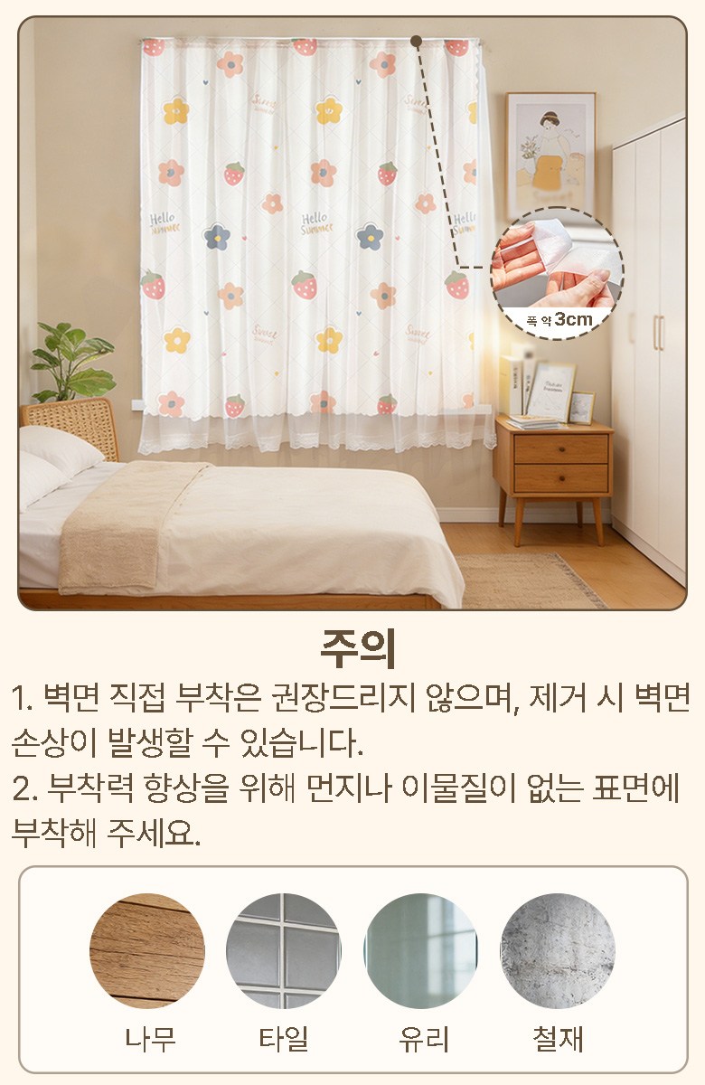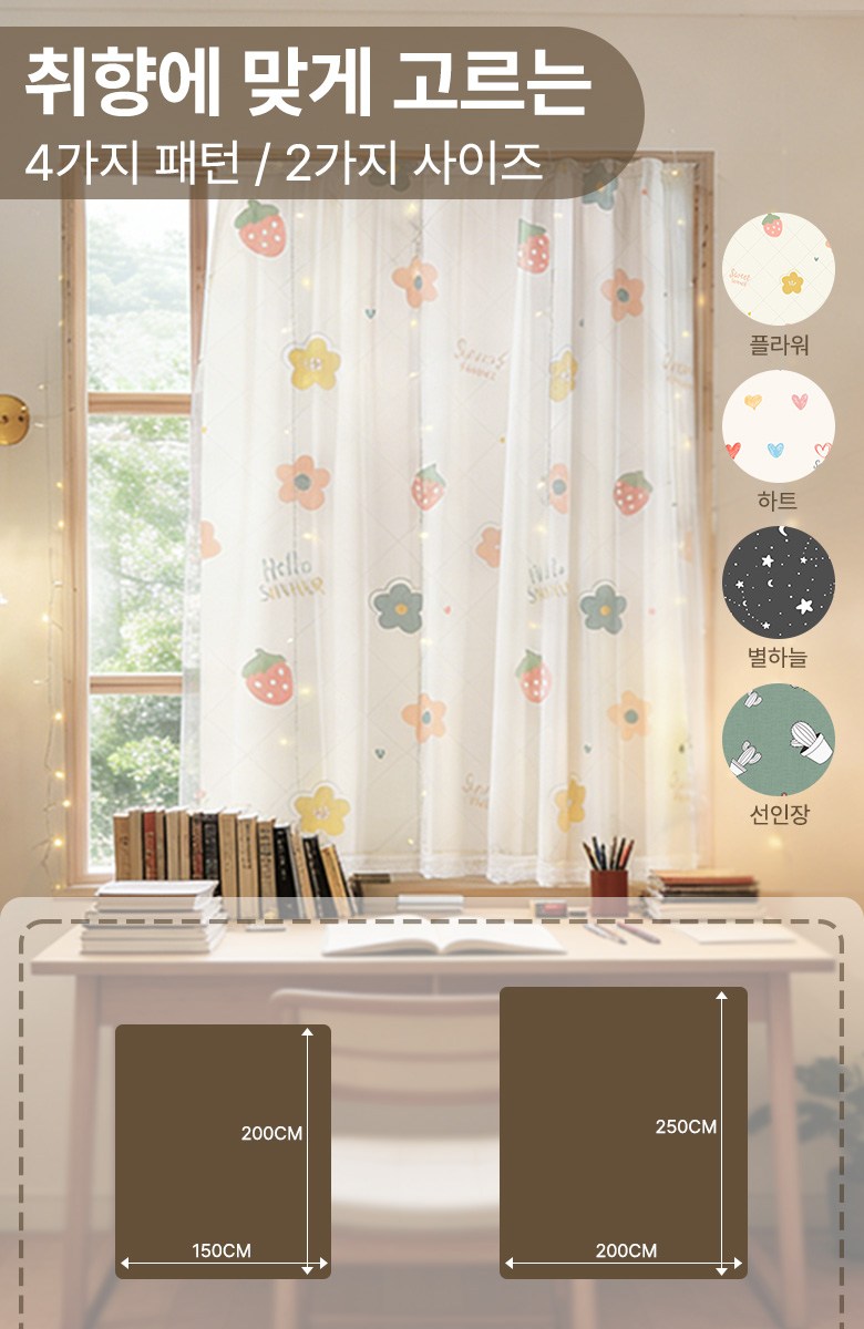 | 치수 | M(150x200 cm),S(100x150 cm) | 제품구성 | 벨크로+이중커튼(1매입) |