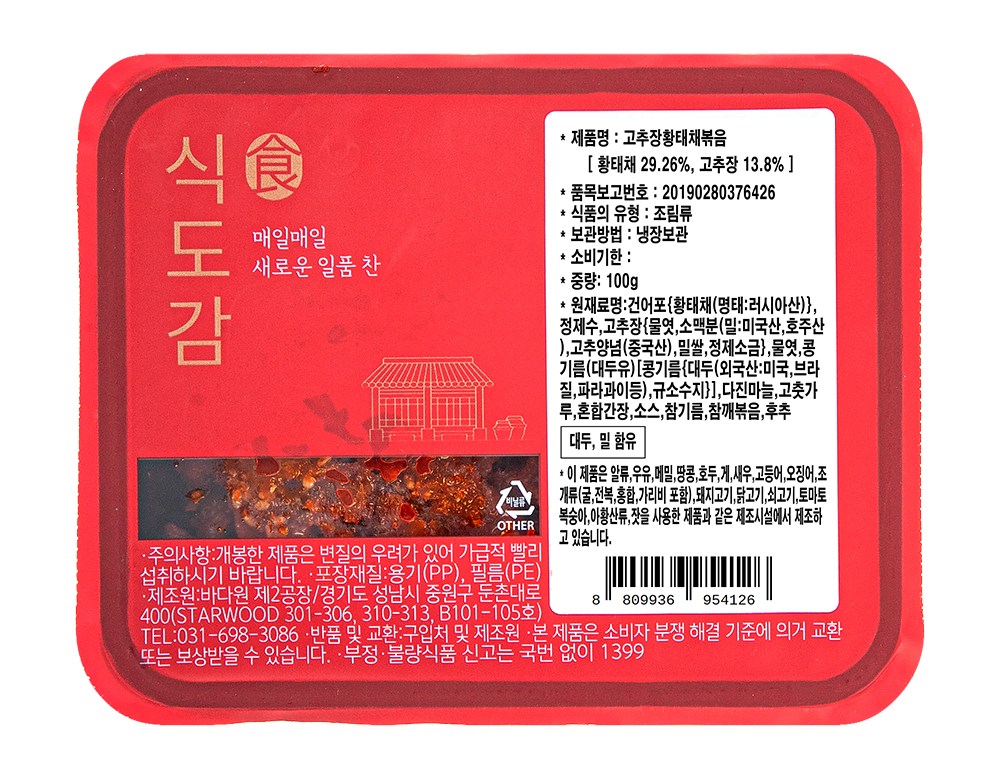 명태를 부드럽게 말린 황태채. 쫄깃쫄깃한 황태채를 매콤 달콤한 양념에 볶아냈어요. 밥반찬으로도, 맥주 안주로도 즐기기 좋답니다. 맛있게 매운맛과 달달한 풍미의 조화가 입맛을 돋워, 자꾸만 손이 가게 될 거예요.
