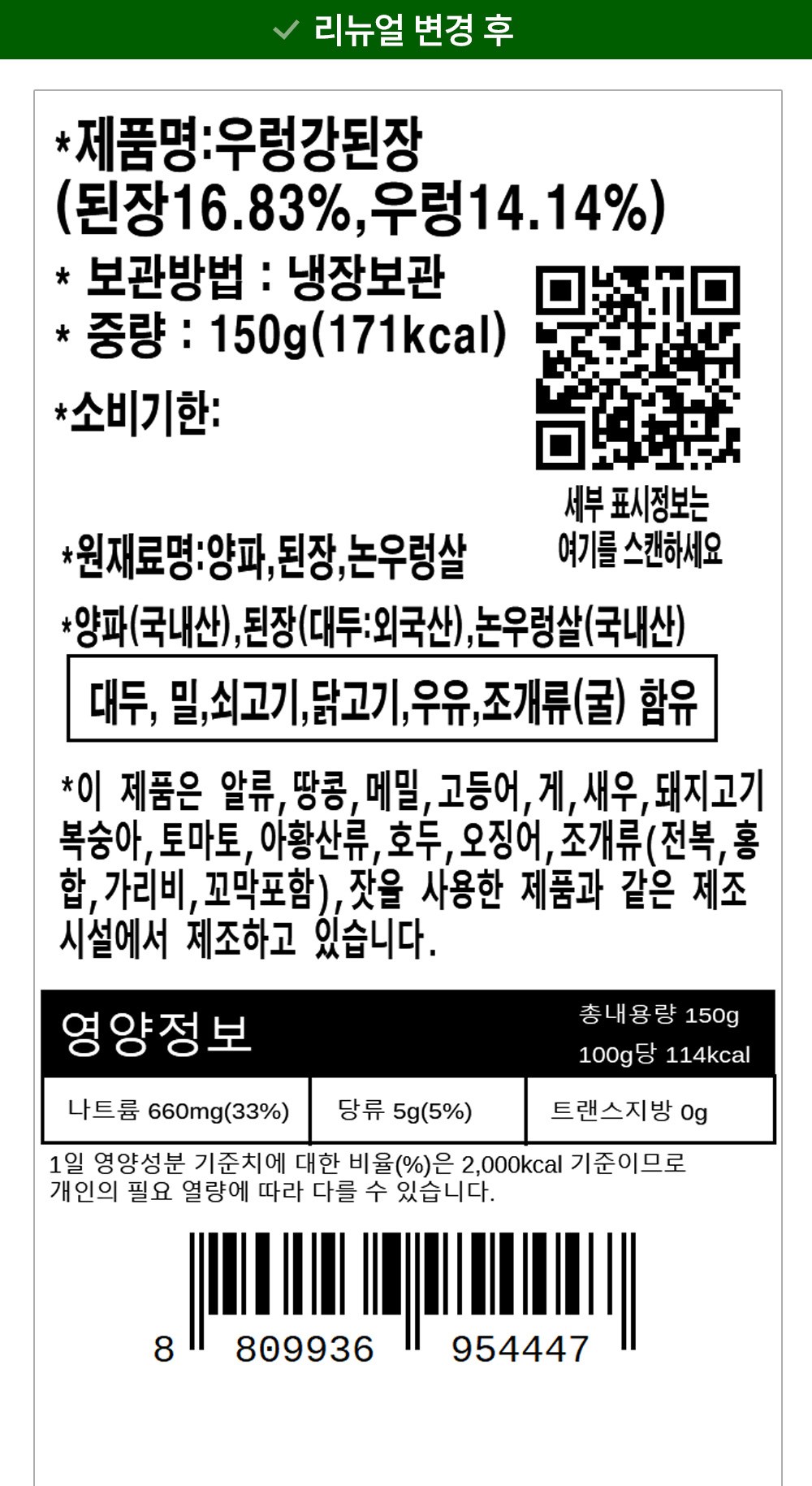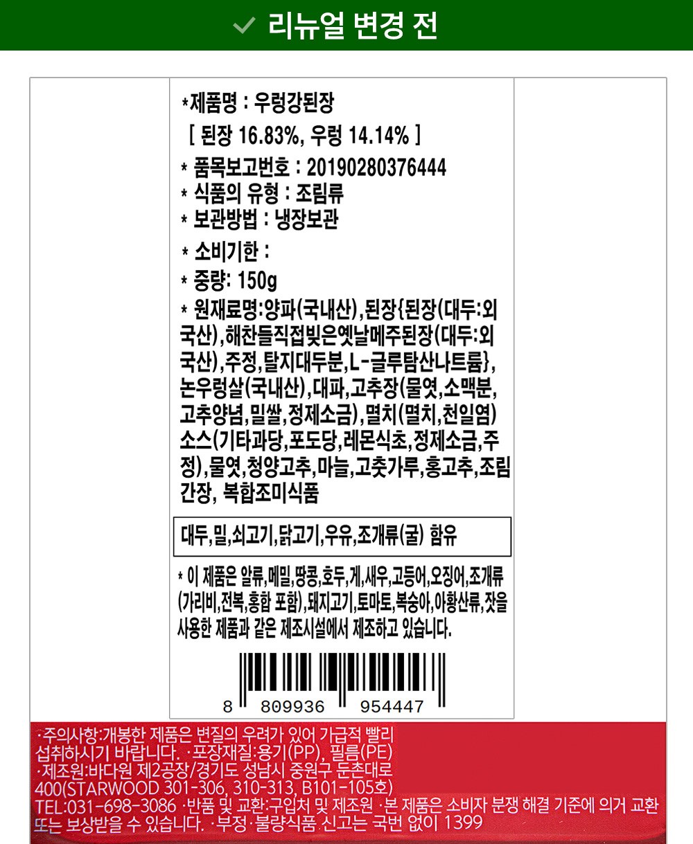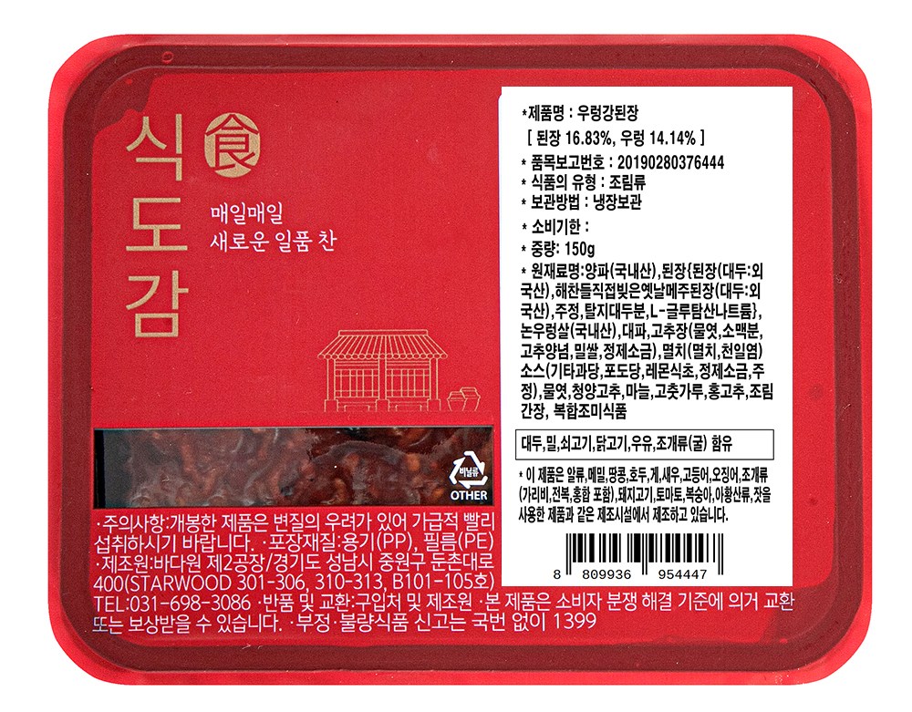 | 포장단위별 내용물의 용량(중량), 수량 | 150g, 1개 | 원재료명 및 함량 | 컨텐츠 참조 |