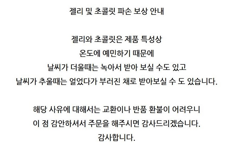 - ㆍ모니터 해상도의 차이로 인해 색상이나 이미지가 실제와 달라, 고객이 단순 변심으로 교환/반품을 무료로 요청하는 경우