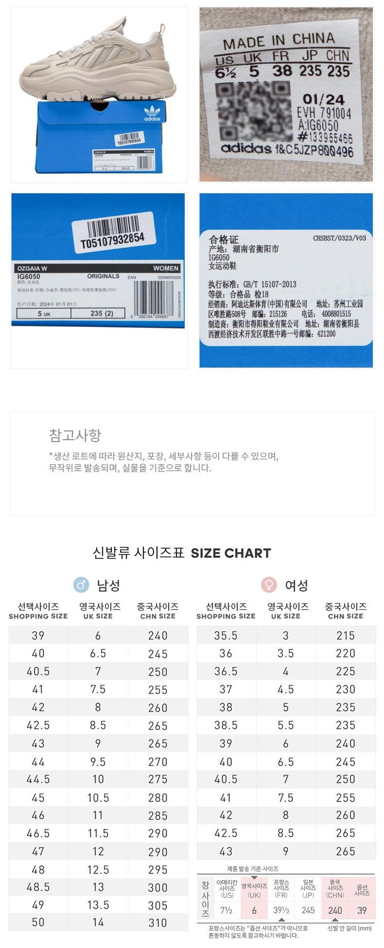 | 치수 | 220mm | 제조자(수입자) | Adidas sports (China) Co., Ltd |