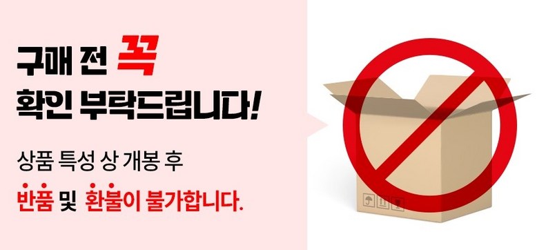 - ㆍ모니터 해상도의 차이로 인해 색상이나 이미지가 실제와 달라, 고객이 단순 변심으로 교환/반품을 무료로 요청하는 경우