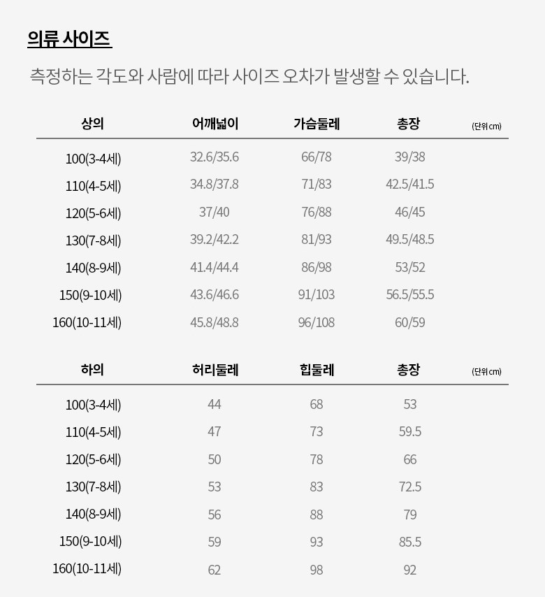 | 색상 | 컨텐츠 참조 | 재질 | 맨투맨: 면70% 폴리에스터 30% / 티셔츠: 면65% 폴리에스터35% / 바지: 면70% 폴리에스터30% |