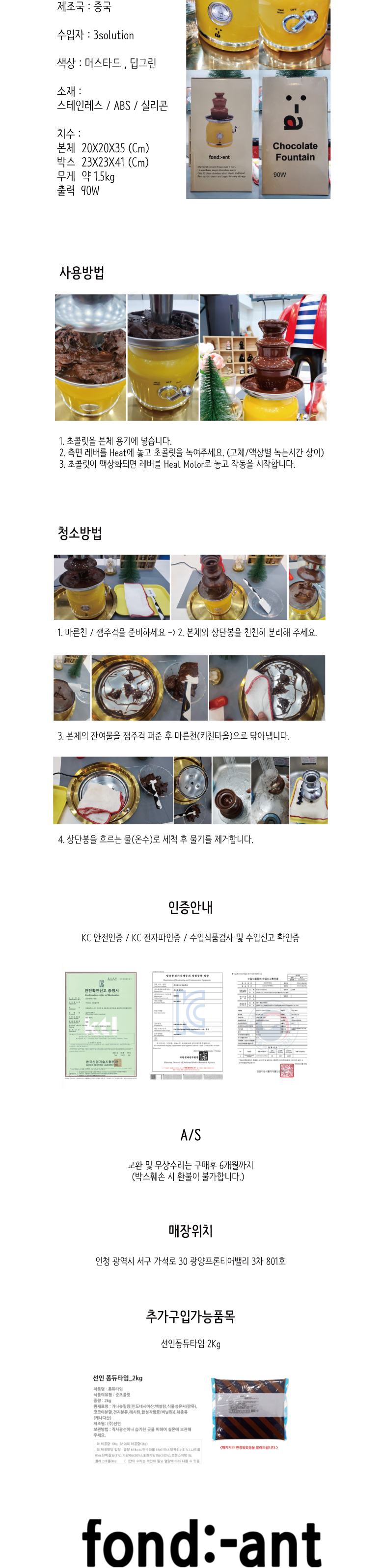 | 품명 및 모델명 | fond:ant chocolate foutain | 재질 | 스테인레스, ABS |