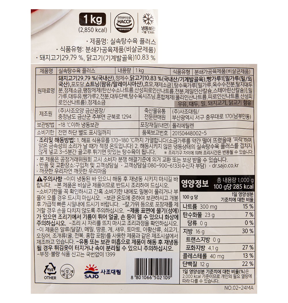 | 포장단위별 내용물의 용량(중량), 수량 | 1kg x 3개 | 원재료명 및 함량 | 컨텐츠 참조 |