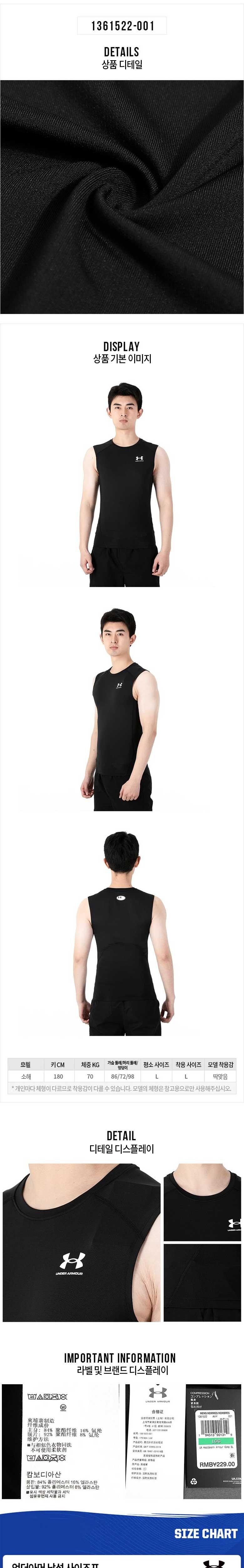 언더아머 남성 히트기어 슬리브리스 티셔츠 1361522-001