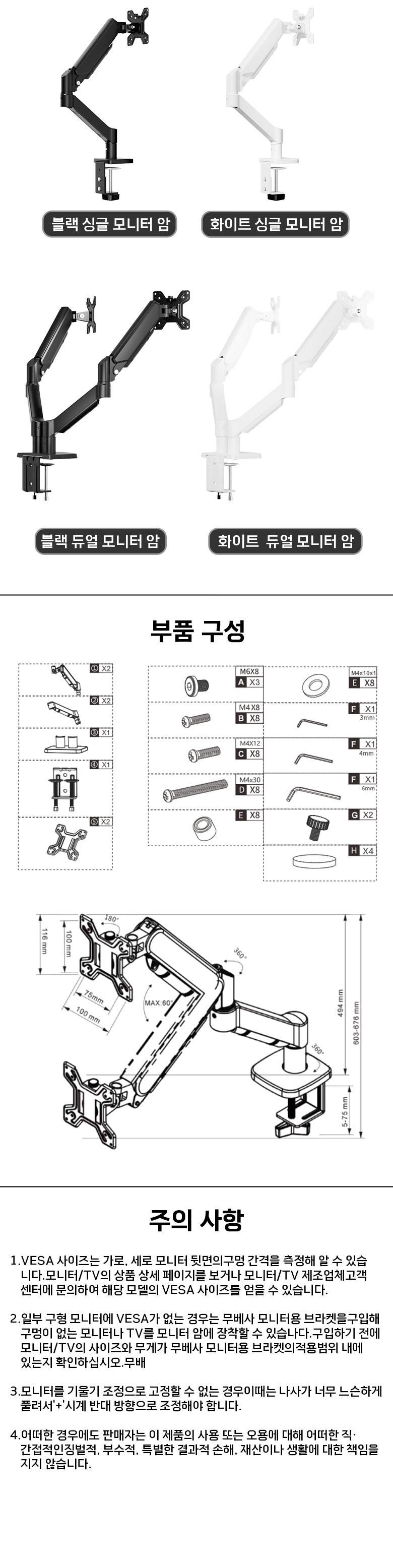 디상커 베사홀 높이조절 각도조절 3단 듀얼 모니터암 M252D