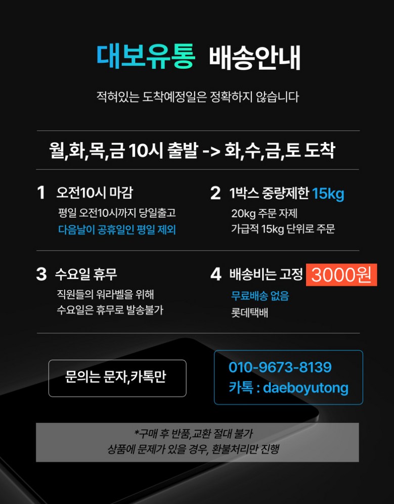 - ㆍ교환/반품에 관한 일반적인 사항은 판매자가 제시사항보다 관계법령이 우선합니다.