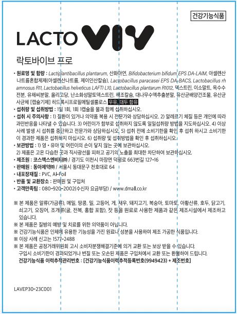 | 제품명 | 락토바이브 프로 | 제조업소의 명칭과 소재지 | 컨텐츠 참조 |