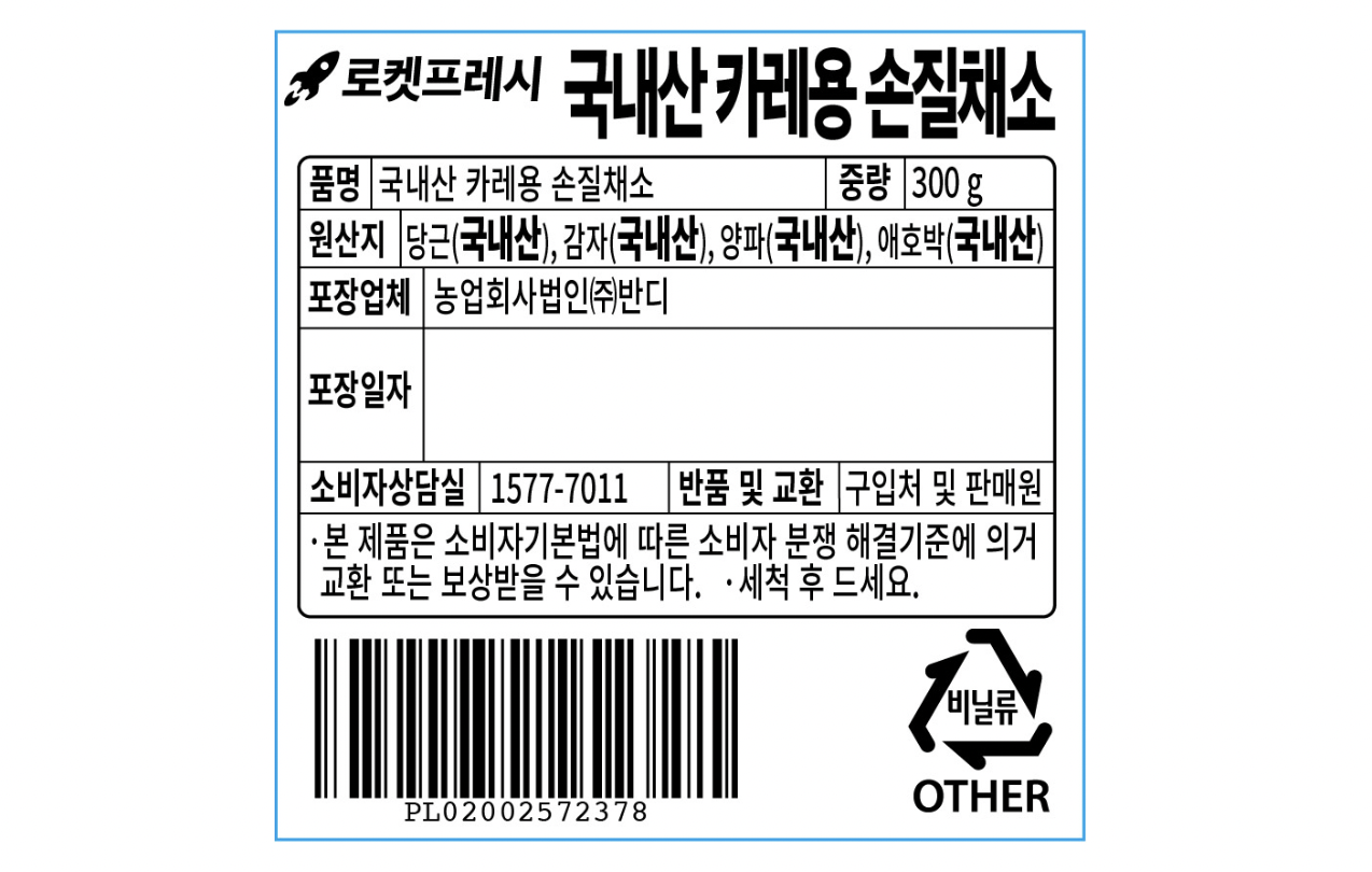 | 품목 또는 명칭 | 국내산 카레용 손질채소 | 포장단위별 내용물의 용량(중량),수량,크기 | 300g x 4개 |