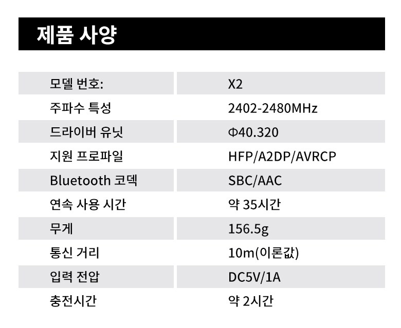 | 품명 및 모델명 | X2 | KC 인증정보 | 상품 상세페이지 참조 |