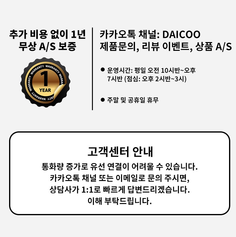 - ㆍ제조사의 사정 (신모델 출시 등) 및 부품 가격 변동 등에 의해 무료 교환/반품으로 요청하는 경우