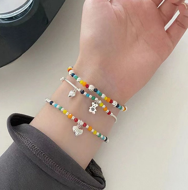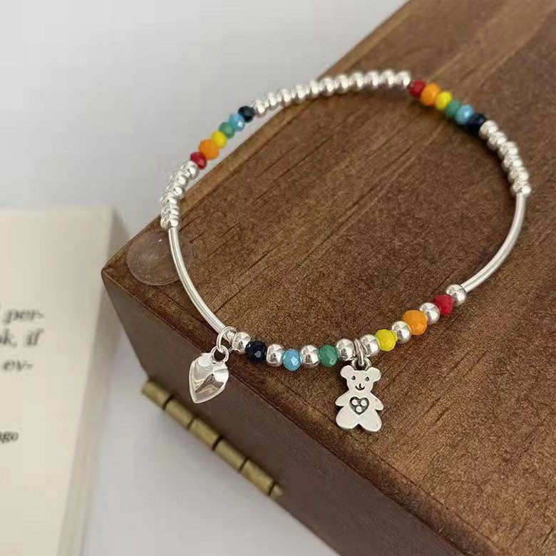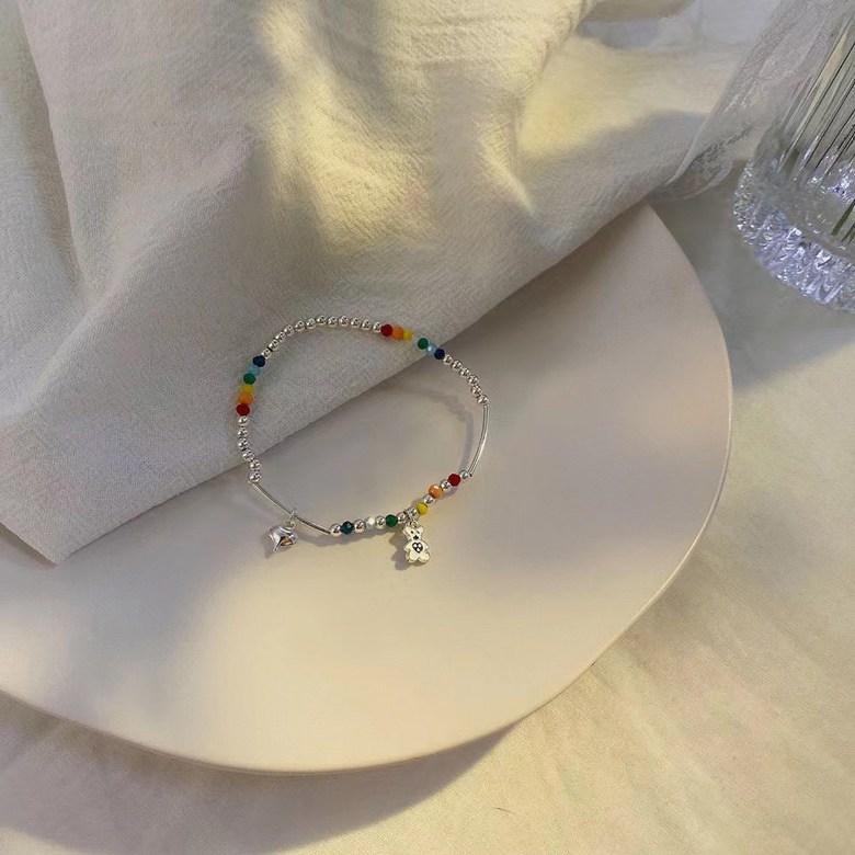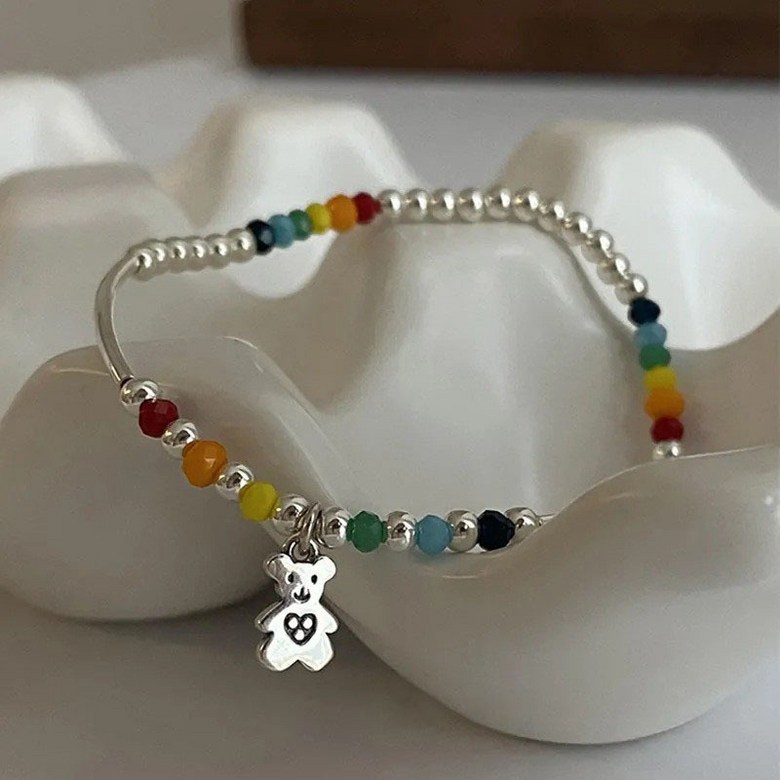 투니스 여성 레인보우 비즈 곰돌이 하트 펜던트 팔찌