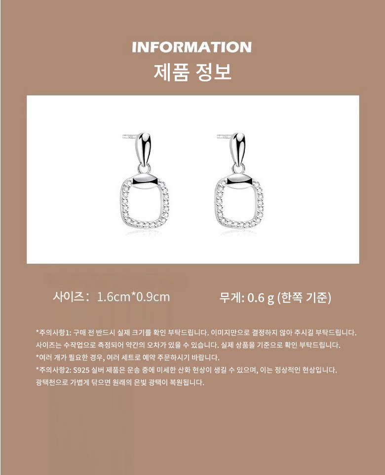 투니스 여성 심플 스퀘어 스터드 귀걸이