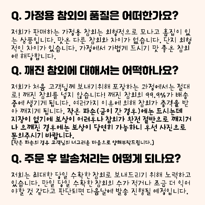 - ㆍ모니터 해상도의 차이로 인해 색상이나 이미지가 실제와 달라, 고객이 단순 변심으로 교환/반품을 무료로 요청하는 경우