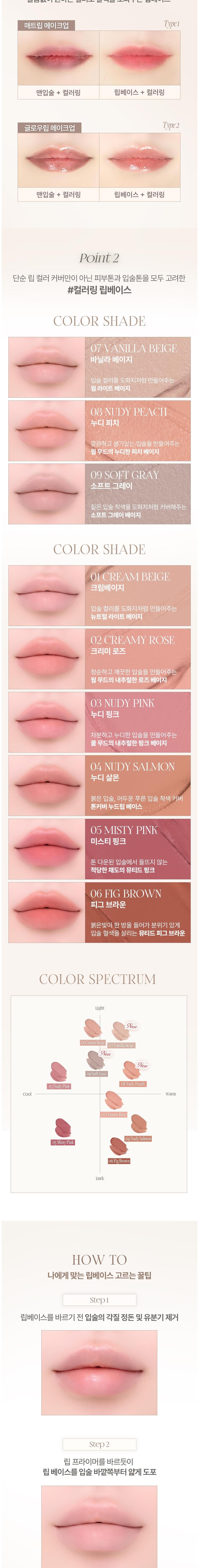 | 사용기한 또는 개봉 후 사용기간 | 본 상품은 해당 물류센터 직발송 상품인 관계로 제조연월일 및 사용기한 정보가 매번 변경되므로 상단 사용기한 정보를 참고해 주세요. | 사용방법 | 립 메이크업 첫 단계에서 팁에 적당량의 내용물을 묻혀 펴 발라줍니다 |