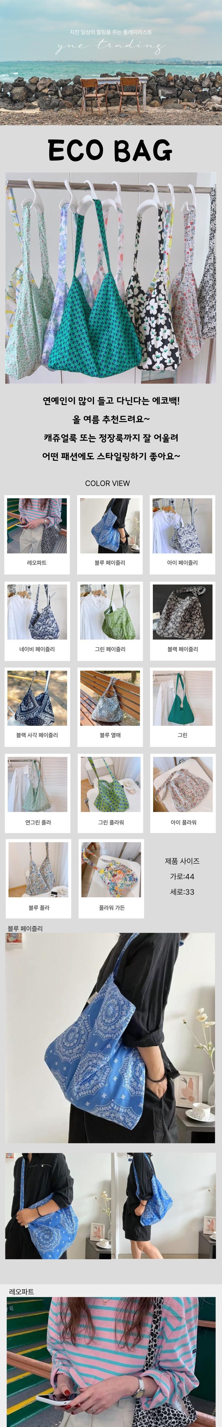와이엔이 연예인 플라워 에코백 캐쥬얼 심플 꽃무늬 숄더백 크로스백