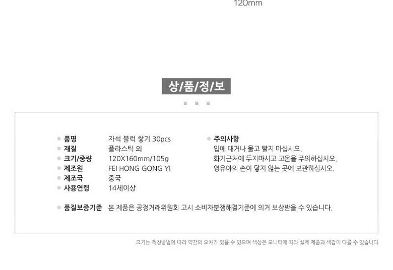 | 품명 및 모델명 | 자석 블럭 쌓기 30pcs | 인증/허가 사항 | 해당사항없음(14세이상) |