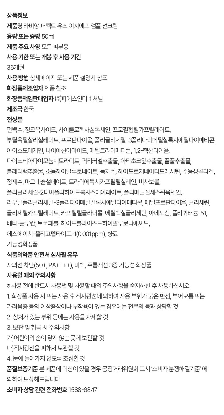 | 화장품제조업자, 화장품책임판매업자 및 맞춤형화장품판매업자 | 상품 상세페이지 참조 | 제조국 | 상품 상세페이지 참조 |
