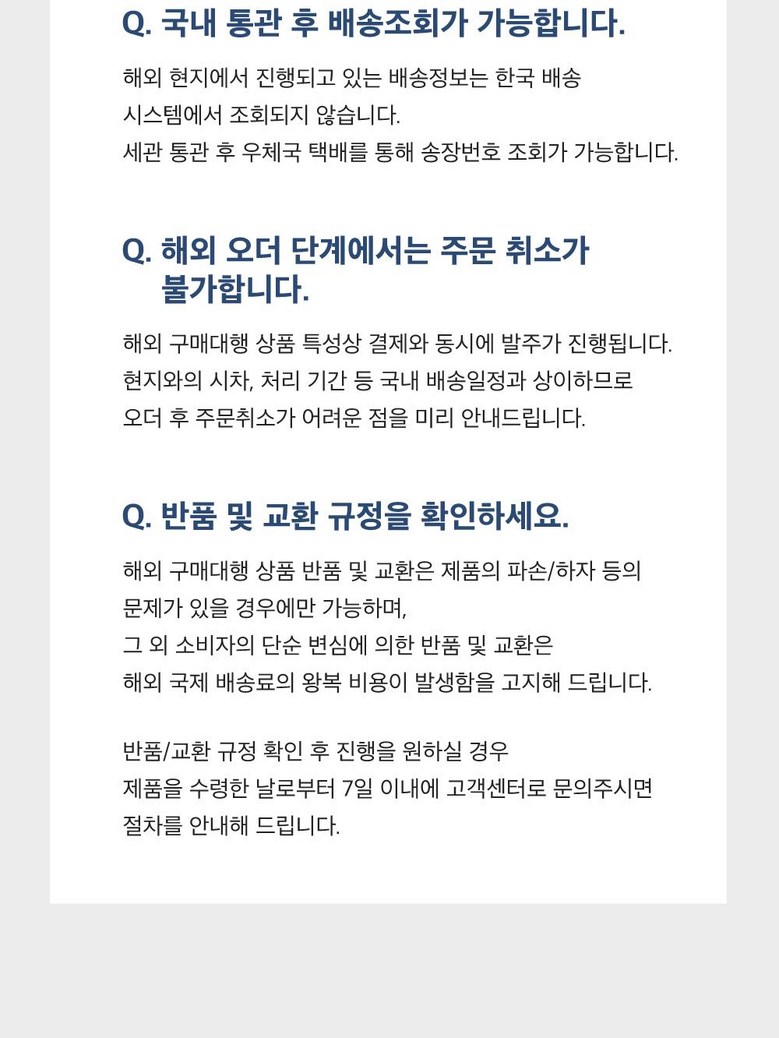 | 배송방법 | 해외직구 | 배송비 | 무료배송 · 도서산간 추가 배송비 - 제주 지역: 400원 - 도서산간 지역: 400원 |