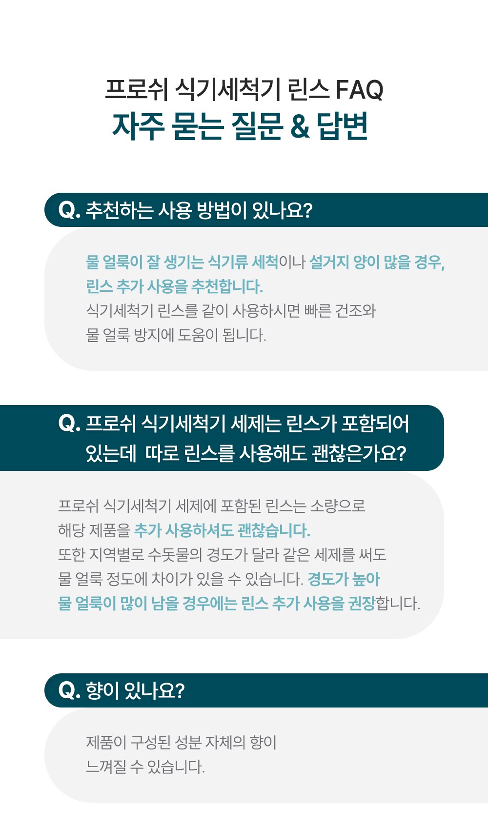 | 품명 및 모델명 | 프로쉬 식기세척기용 헹굼보조제(린스) | 인증/허가 사항 | 위생용품 |