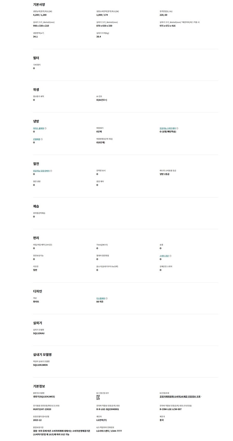 | 정격전압, 소비전력 | 상품 상세페이지 참조 | 에너지소비효율등급 | 상품 상세페이지 참조 |