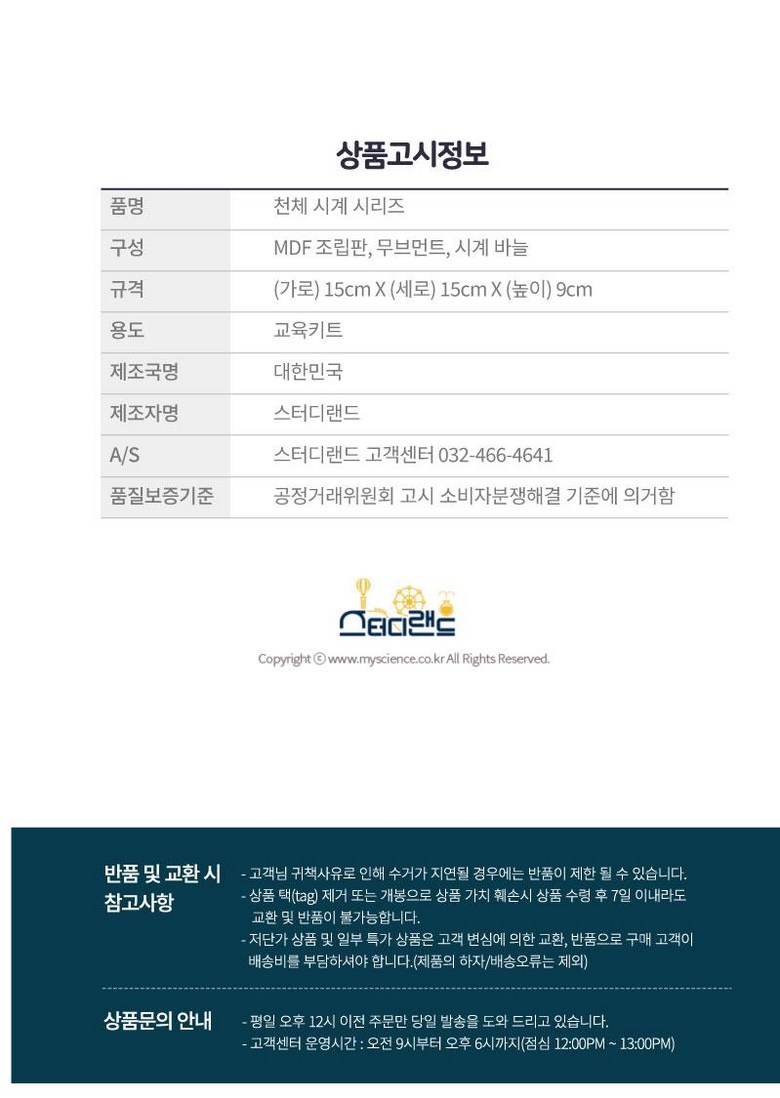 - ㆍ교환/반품에 관한 일반적인 사항은 판매자가 제시사항보다 관계법령이 우선합니다.