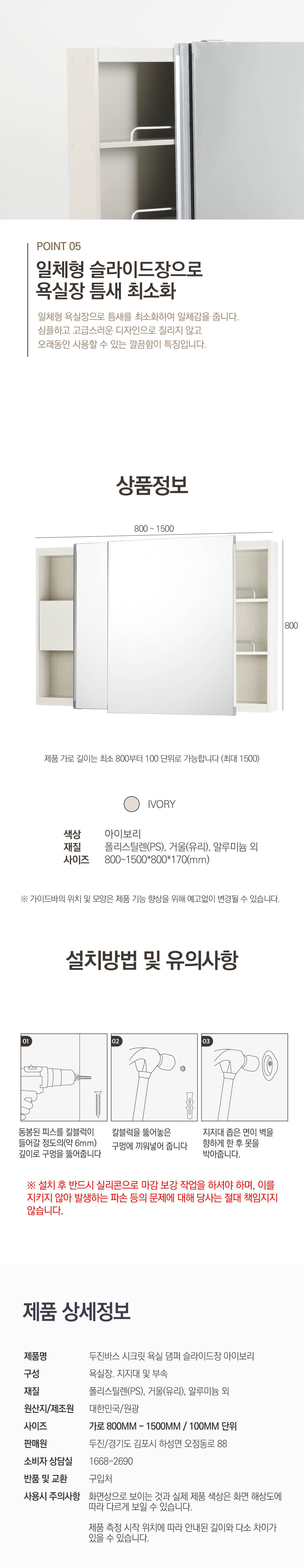 | 품명 및 모델명 | 두진 시크릿 욕실 무소음 슬라이드장 댐퍼형 아이보리 DSL-1400D 방문설치 | 인증/허가 사항 | 해다없음 |