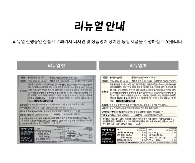 | 제품명 | 꿀이든 미숫가루 | 식품의 유형 | 기타가공품 |