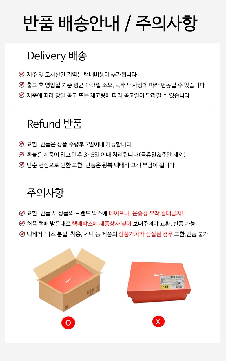 - ㆍ교환/반품에 관한 일반적인 사항은 판매자가 제시사항보다 관계법령이 우선합니다.