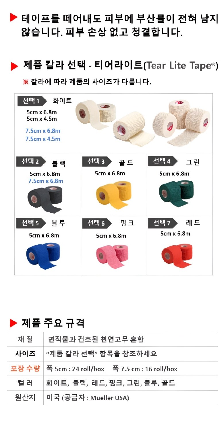 | 품명 및 모델명 | 뮬러 티어라이트 칼라 테이프 | KC 인증정보 | 해당없음 |
