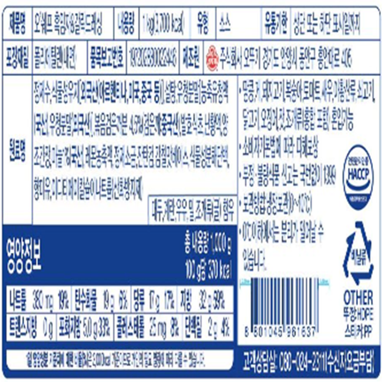 | 제조연월일, 소비기한 또는 품질유지기한 | 상품 상세페이지 참조 | 세부 품목군별 표시사항 | 상품 상세페이지 참조 |