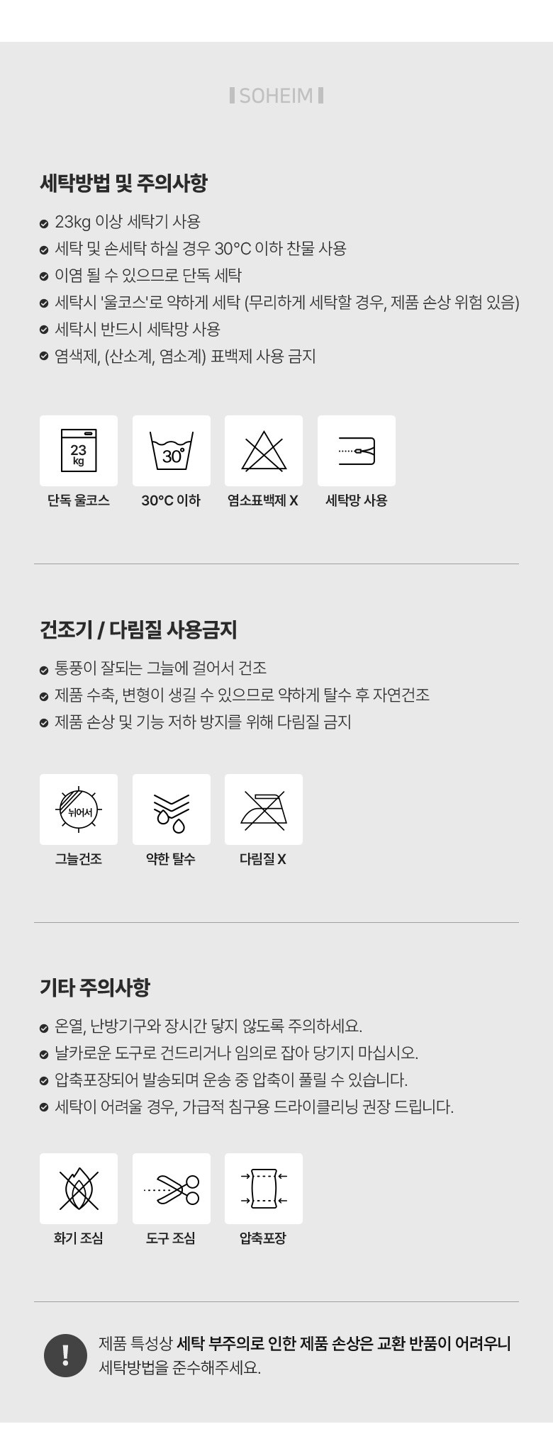 - 세탁가능 여부: 세탁 가능