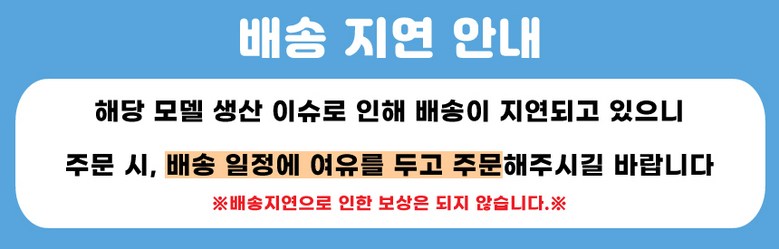 | 교환/반품 신청 기준일 | ㆍ단순변심에 의한 교환/반품은 제품 수령 후 7일 이내까지, 교환/반품 제한사항에 해당하지 않는 경우에만 가능 (배송비용과 교환/반품 비용 왕복배송비 고객부담) ㆍ상품의 내용이 표시·광고의 내용과 다른 경우에는 상품을 수령한 날부터 3개월 이내, 그 사실을 안 날 또는 알 수 있었던 날부터 |