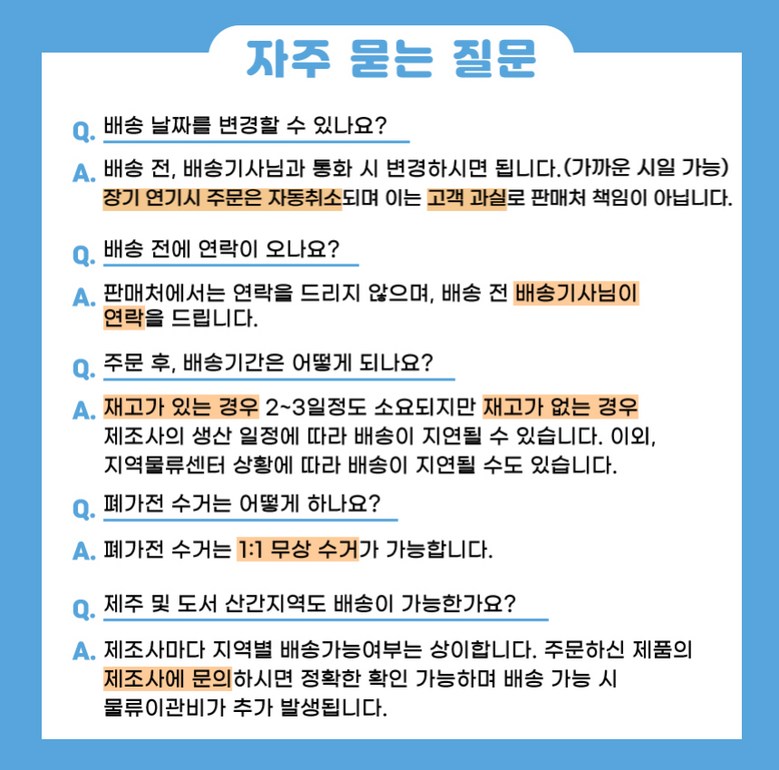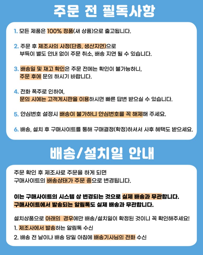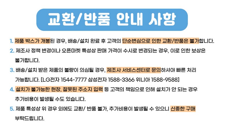 - ㆍ교환/반품에 관한 일반적인 사항은 판매자가 제시사항보다 관계법령이 우선합니다.