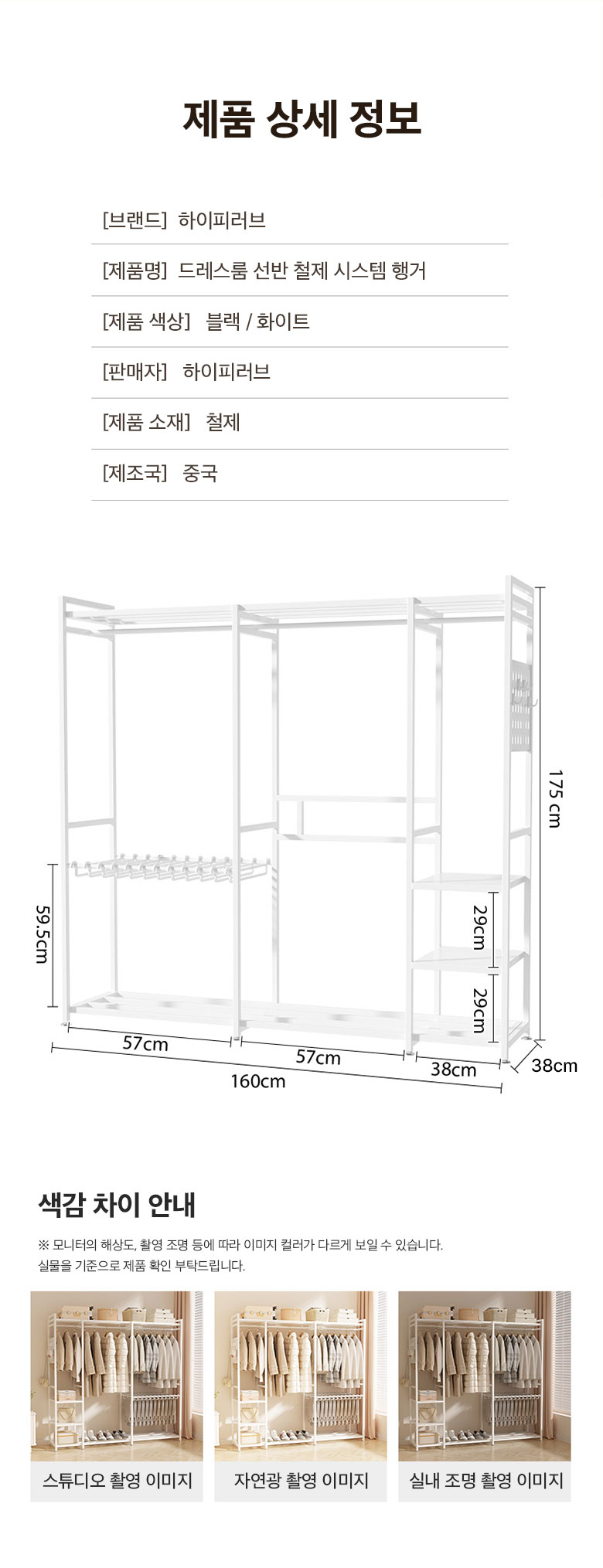 | 품명 및 모델명 | 하이피러브 드레스룸 선반 철제 시스템 행거 | 인증/허가 사항 | 인증대상아님 |