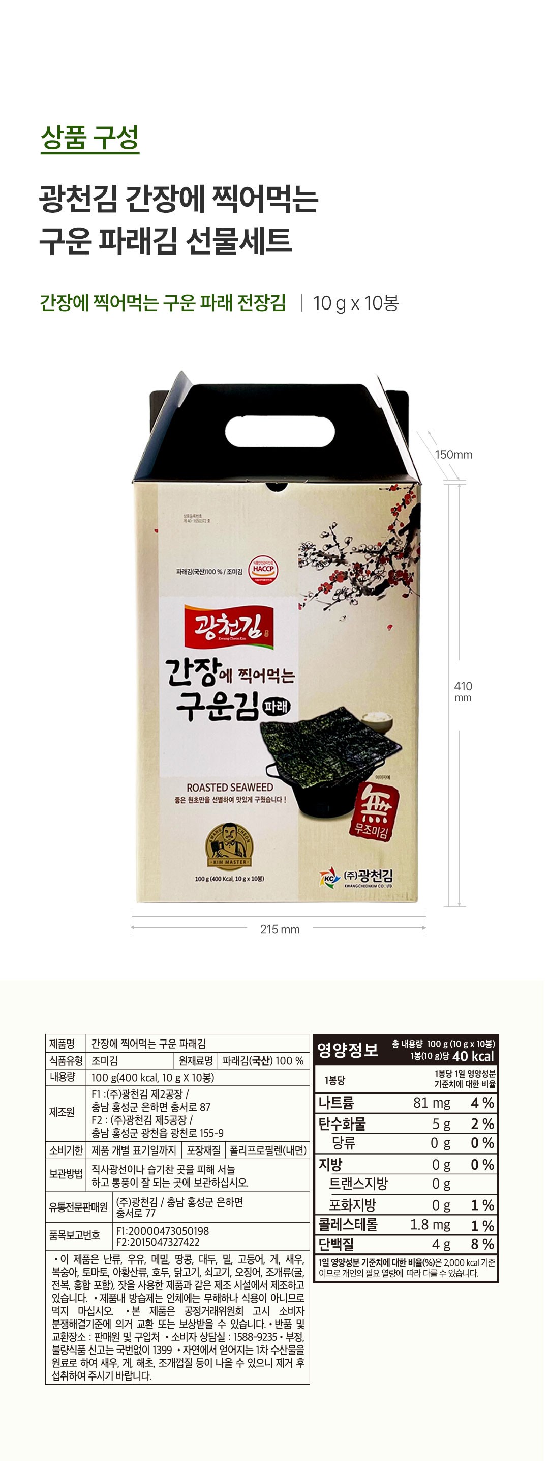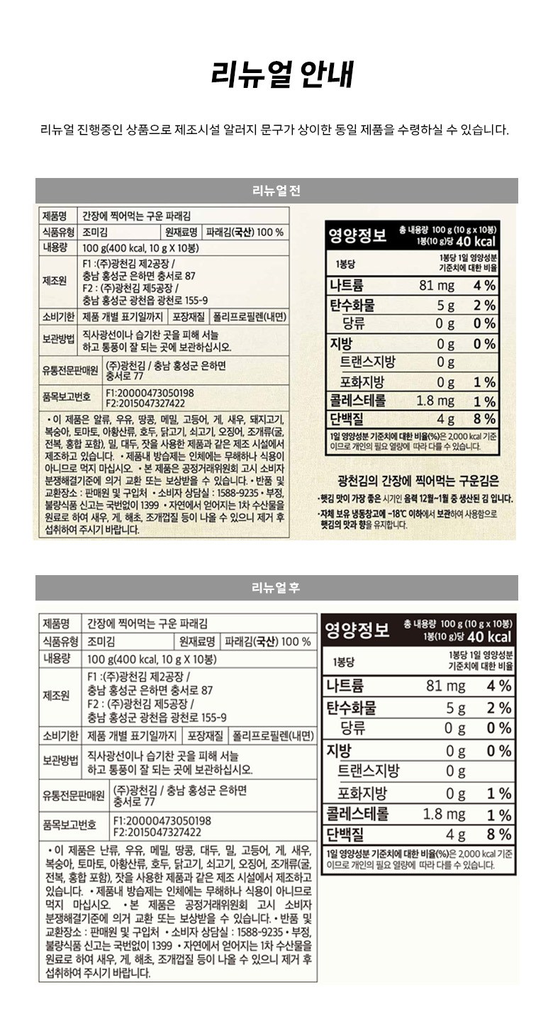 - 김 종류: 파래김
