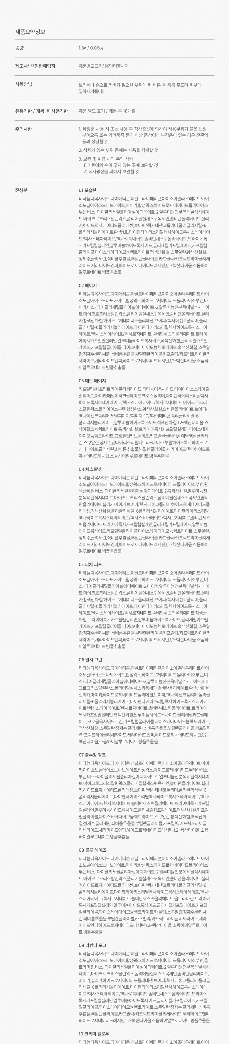 | 화장품제조업자, 화장품책임판매업자 및 맞춤형화장품판매업자 | 상품 상세페이지 참조 | 제조국 | 상품 상세페이지 참조 |