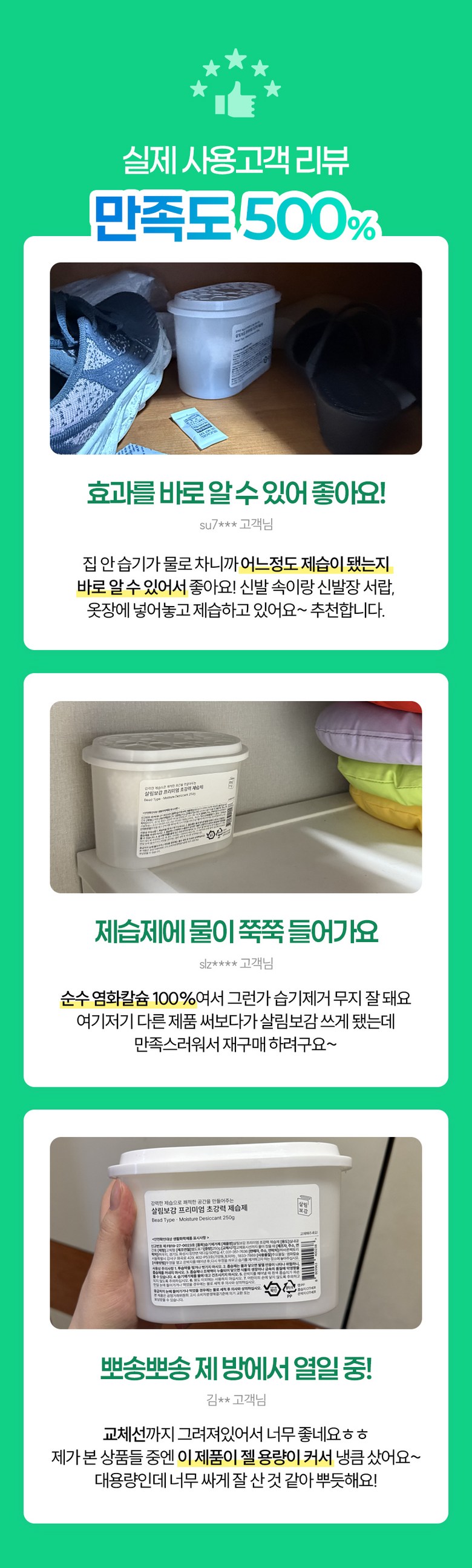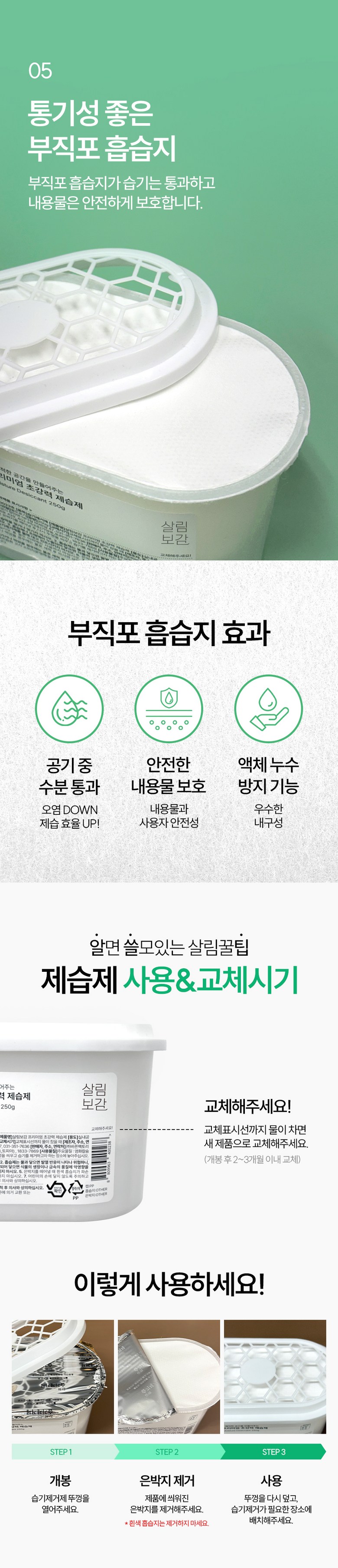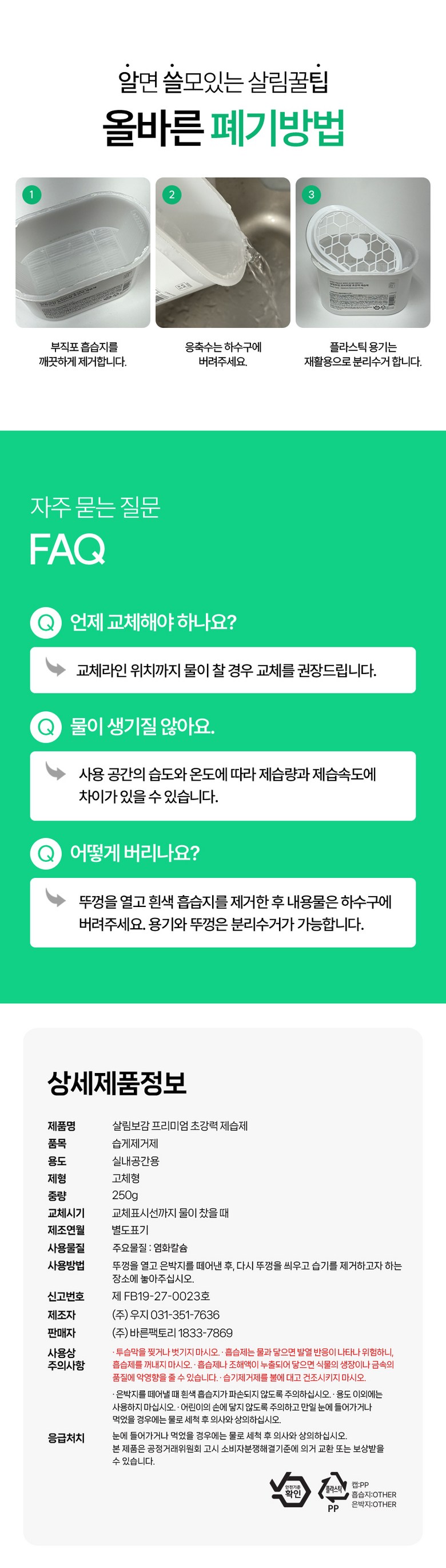 | 품목 및 제품명 | 살림보감 프리미엄 초강력 제습제 | 용도(표백제의 경우 계열을 함께표시) 및 제형 | 상품 상세페이지 참조 |