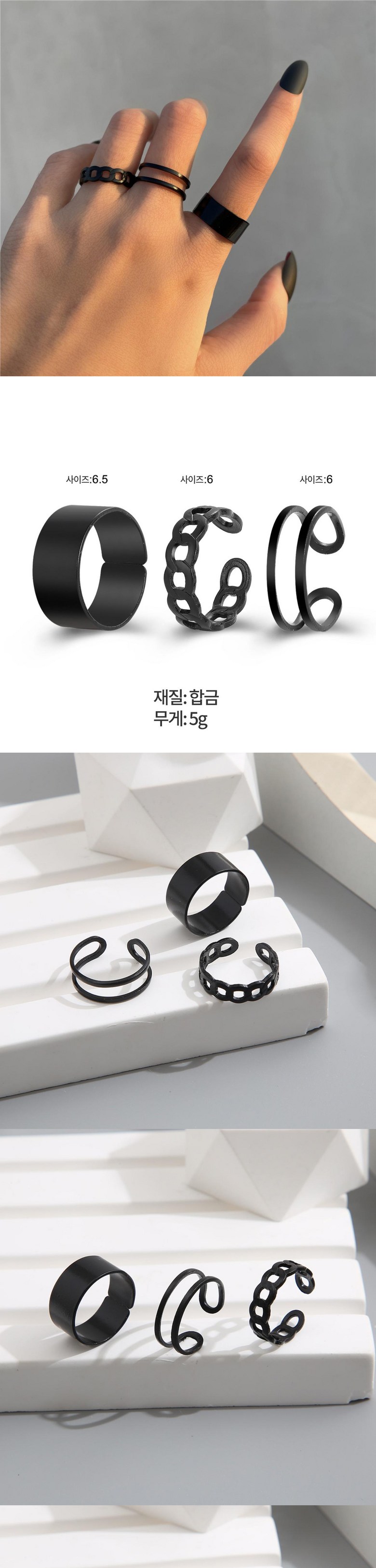 RoseAria 여성 심플 VC 오픈 반지 3종 세트
