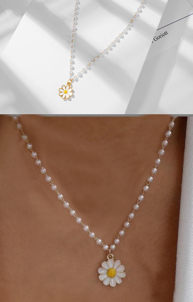 RoseAria 여성 데이지 펜던트 펄 체인 목걸이