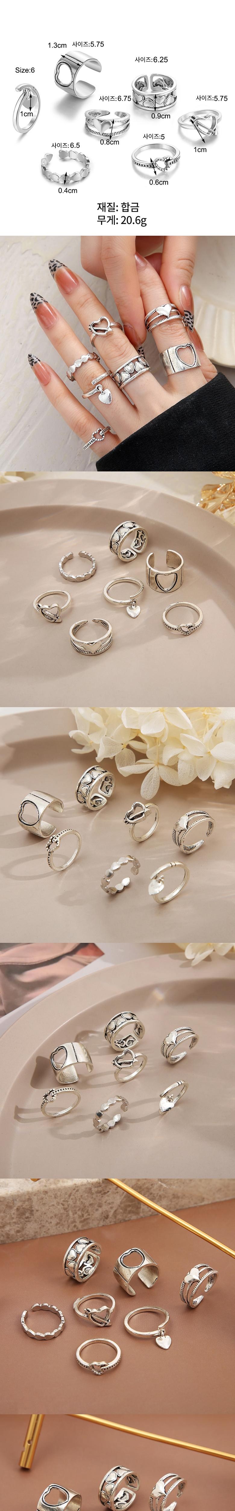RoseAria 여성 레트로 하트 포인트 반지 7종 세트