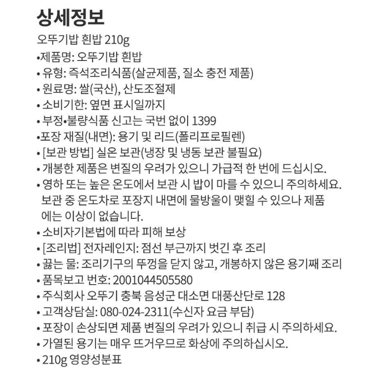 | 제조연월일, 소비기한 또는 품질유지기한 | 상품 상세페이지 참조 | 세부 품목군별 표시사항 | 상품 상세페이지 참조 |