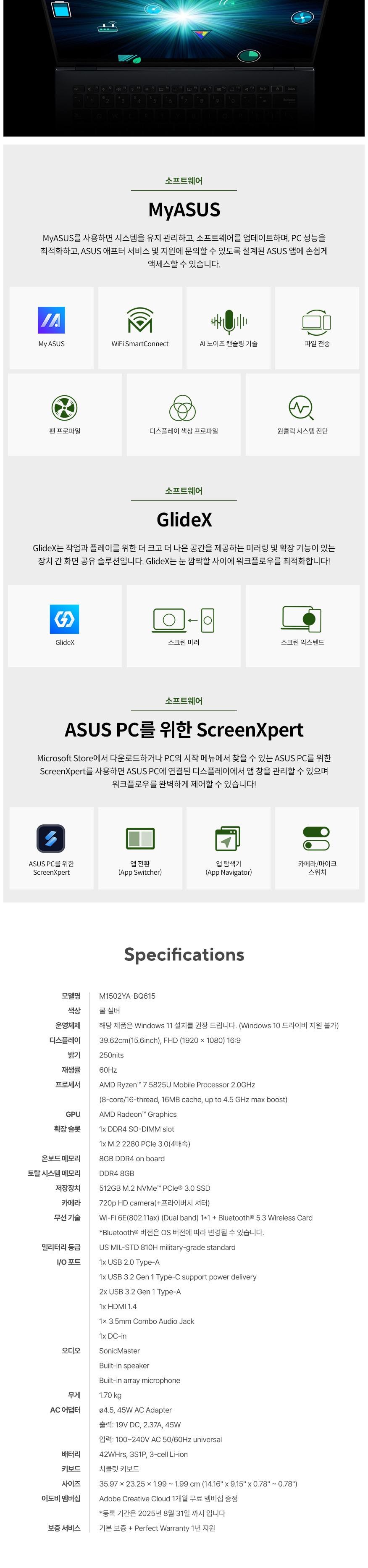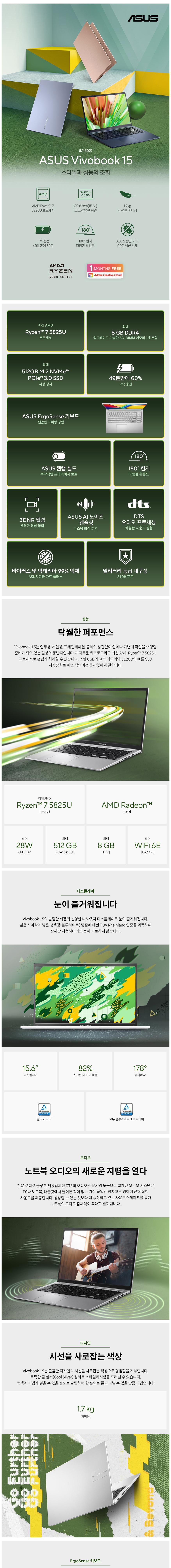 | 품명 및 모델명 | ASUS Vivobook 15 / M1502YA-BQ615(M1502Y) | KC 인증정보 | YU10210-24018 , R-R-MSQ-NB-M1502Y |