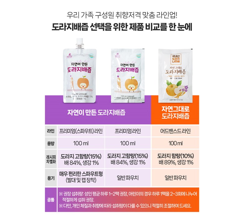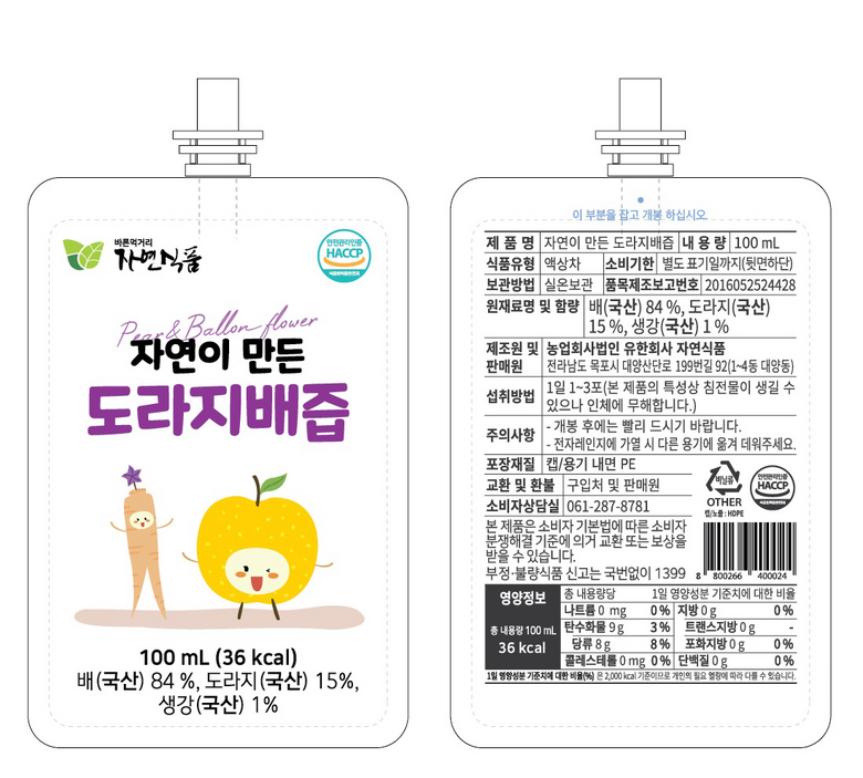 | 제품명 | 자연이 만든 도라지배즙 | 식품의 유형 | 액상차 |