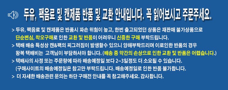 유통기한으로 인한 교환 및 반품 불가하오니 신중한 구매 부탁드립니다.