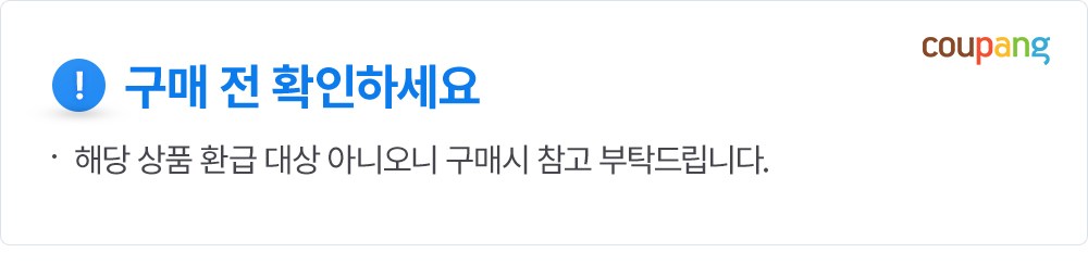 - ㆍ교환/반품에 관한 일반적인 사항은 판매자가 제시사항보다 관계법령이 우선합니다.