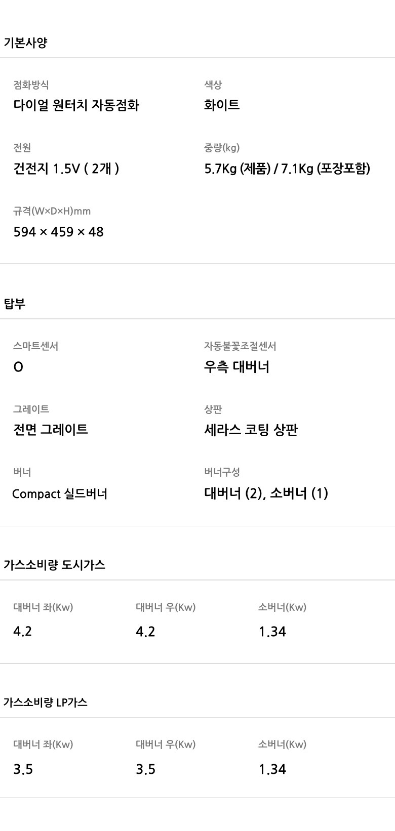 - 그릴포함 여부: 미포함