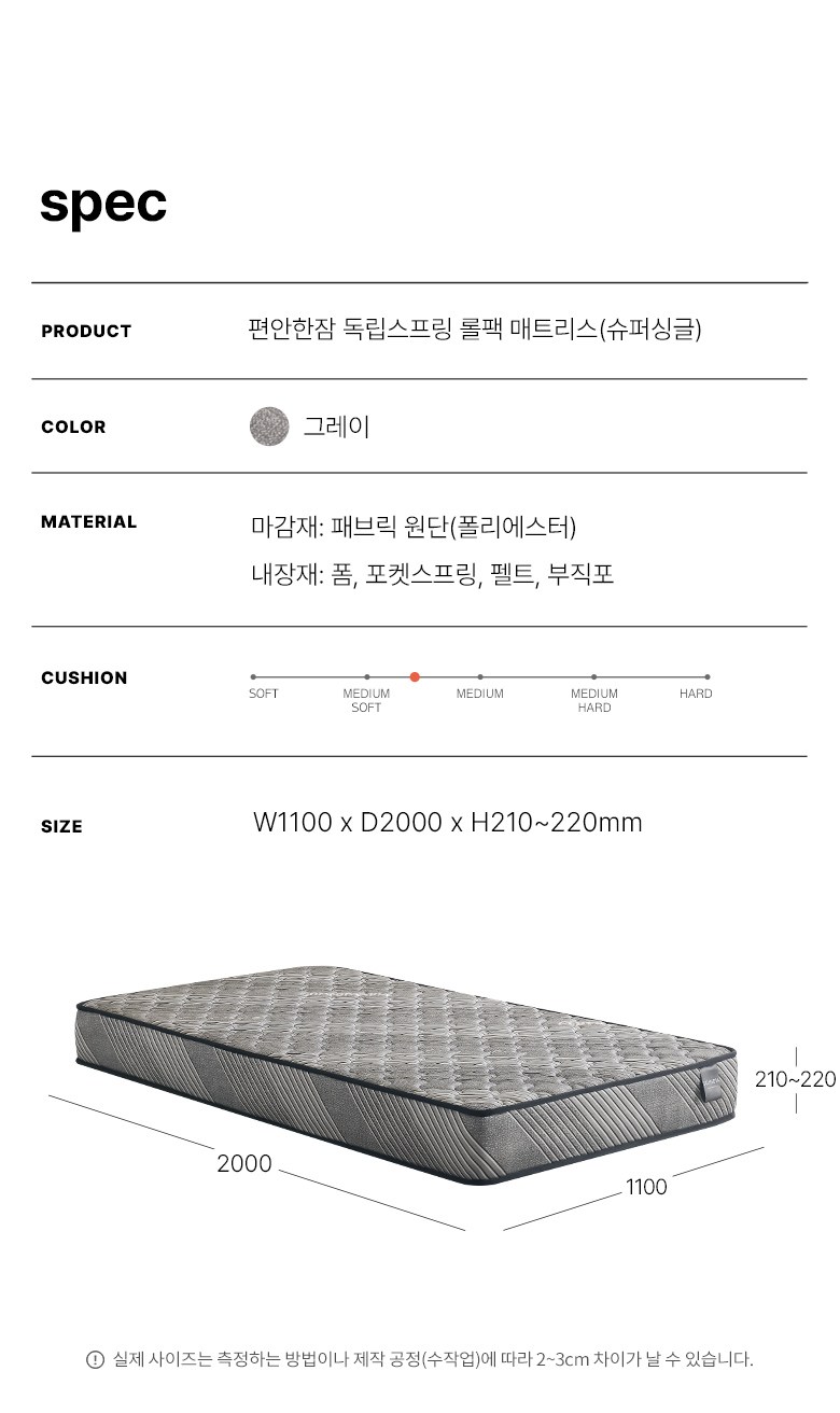 | 품명 | 스칸디아 편안한잠 독립스프링 롤팩 매트리스 | KC 인증정보 | 해당없음 |