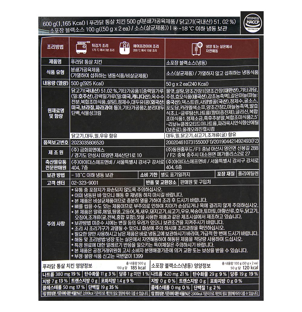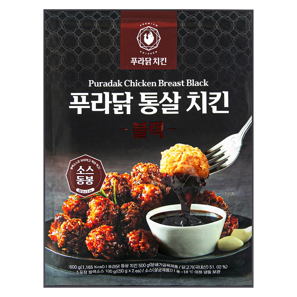 육즙 가득한 통살 치킨에 푸라닭의 시그니처 소스를 더했어요. 푸라닭 매장에서 즐기던 맛 그대로, 집에서도 맛있게 즐길 수 있답니다. 짭조름한 양조간장과 알싸한 갈은마늘이 만난 블랙 소스가 동봉되어 있으니, 취향에 맞게 소스를 부어 드시거나 콕 찍어 드셔보세요.